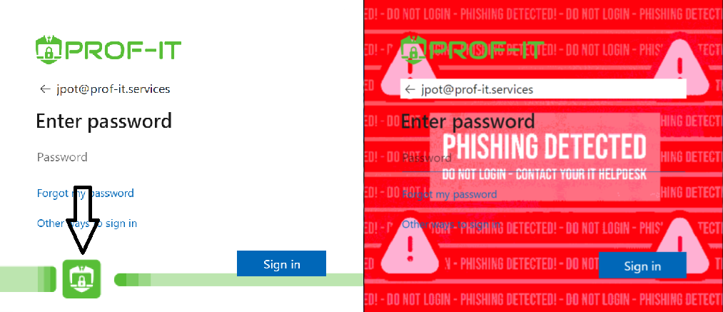Using custom CSS and a server-side solution, we can swiftly detect Man-in-the-middle (MITM) Phishing attacks, which MFA does not protect against. During each login, servers validate the login session, and users are alerted by a red background and warning text in the Microsoft 365 login page when anomalies are detected.
