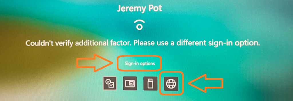 Click on Sign-In Options, then the globe, and sign in with M365 credentials.